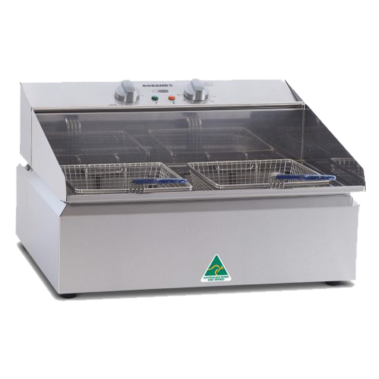 Multi-functional fryer lid included that can fit either with the fryer basket handle protruding from the front, or with the basket handle over the control panel for more compact storage