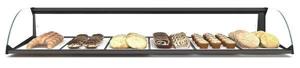 - Elegant, neat, classy and hygienic ambient glass display for muffins, biscuits and other items not requiring refrigeration