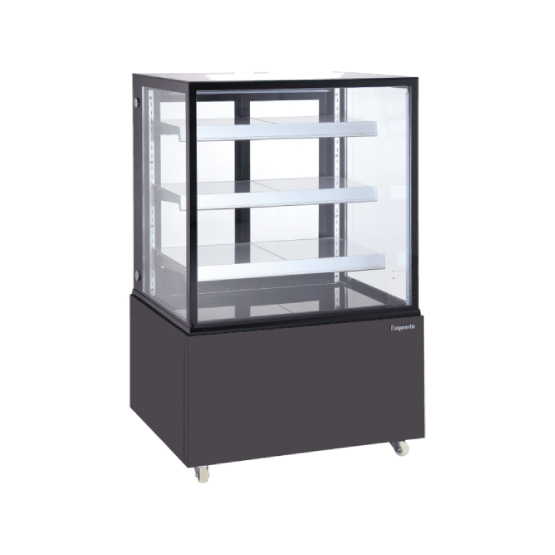 Exquisite CDR309 Four Tiers Cake Display Refrigerators 900mm Width with gross volume 390 Litre. Double glazed glass door for maximum insulation, digital controller and temperature display, dynamic fan forced cooling system with automatic defrosting, black stainless steel finish, frosted glass shelves, sliding door, internal LED light, using R290 gas, temperature set range 2 to 6 Celcius. Warranty: 12 months parts and labour, Australia wide.