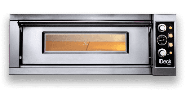 The iDeck line PM – PD consists of electric ovens in stainless steel with a refractory brick deck that distributes the heat evenly over the entire surface. These characteristics make iDeck ovens particularly suitable for baking pizza directly over the deck or in baking tray. The baking chamber is heated by armoured heating elements and have an internal lighting. The door has a tempered glass to control the product while baking. Available on prover, with or without humidifier, or on stand.