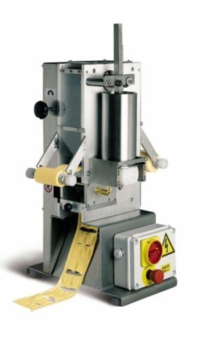 Automatic commercial ravioli maker produces different ravioli shapes and dose the amount of filling required