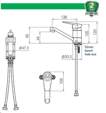 Includes flexi hoses 1 / 2 FI BSP